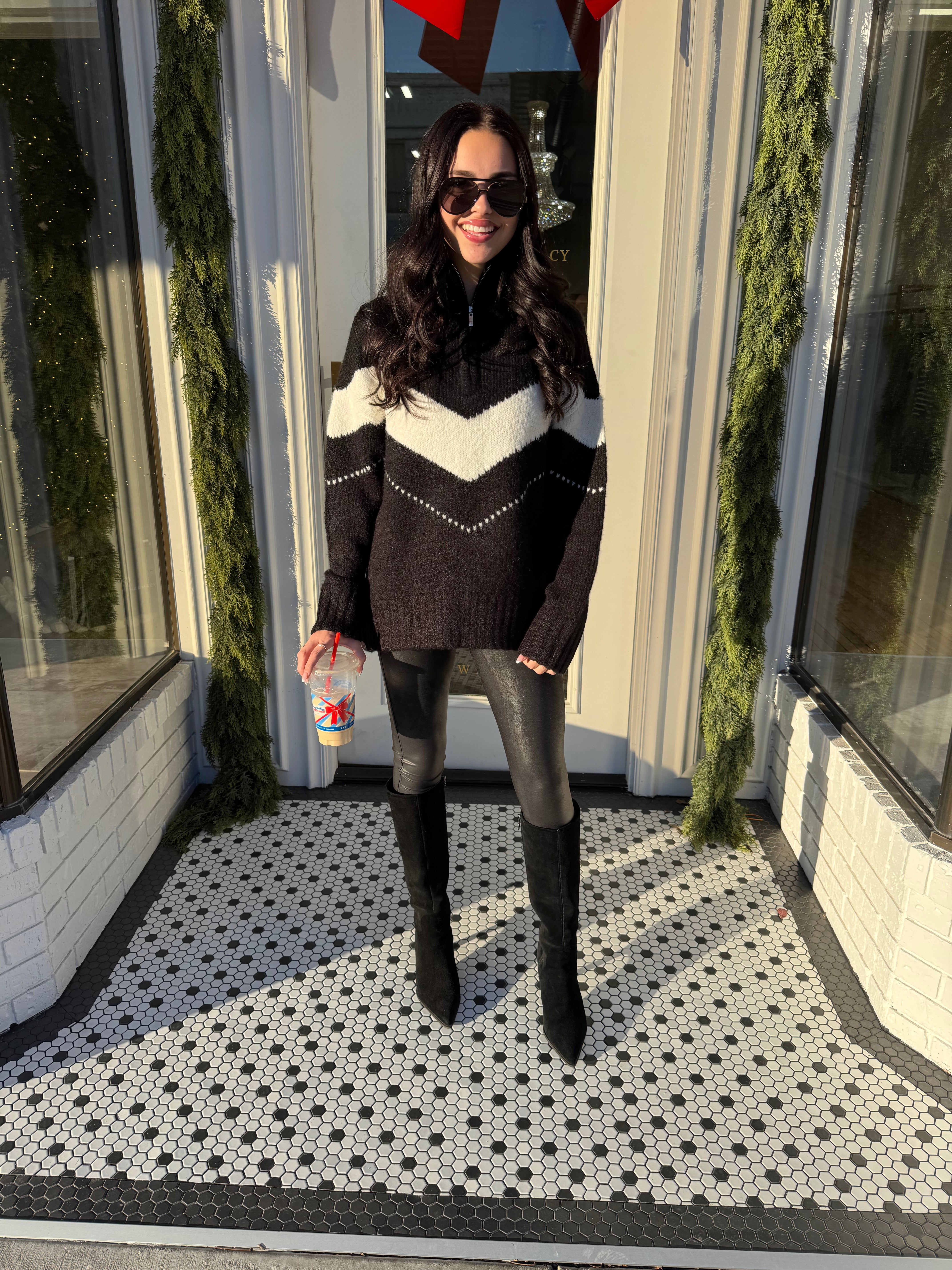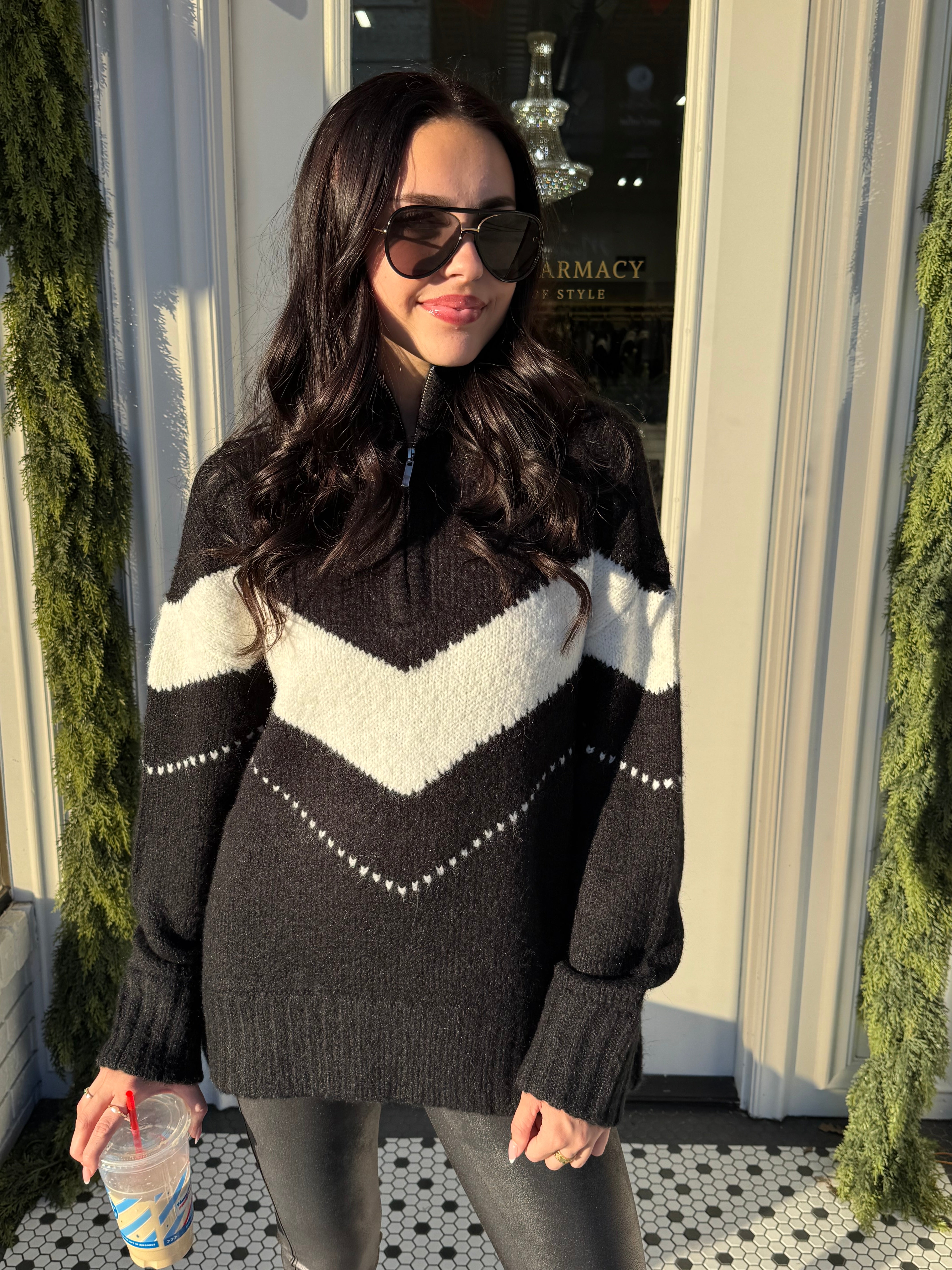 Cool meets cozy in the Women’s Andi Pistola Zip Up, a must-have quarter-zip pullover with an effortlessly bold vibe. Featuring a mock neckline, chevron stripe detail, and relaxed oversized fit, this long sleeve layer delivers laid-back polish. The black colorway keeps it versatile—perfect with leggings, denim, or joggers for off-duty days that still feel pulled together.