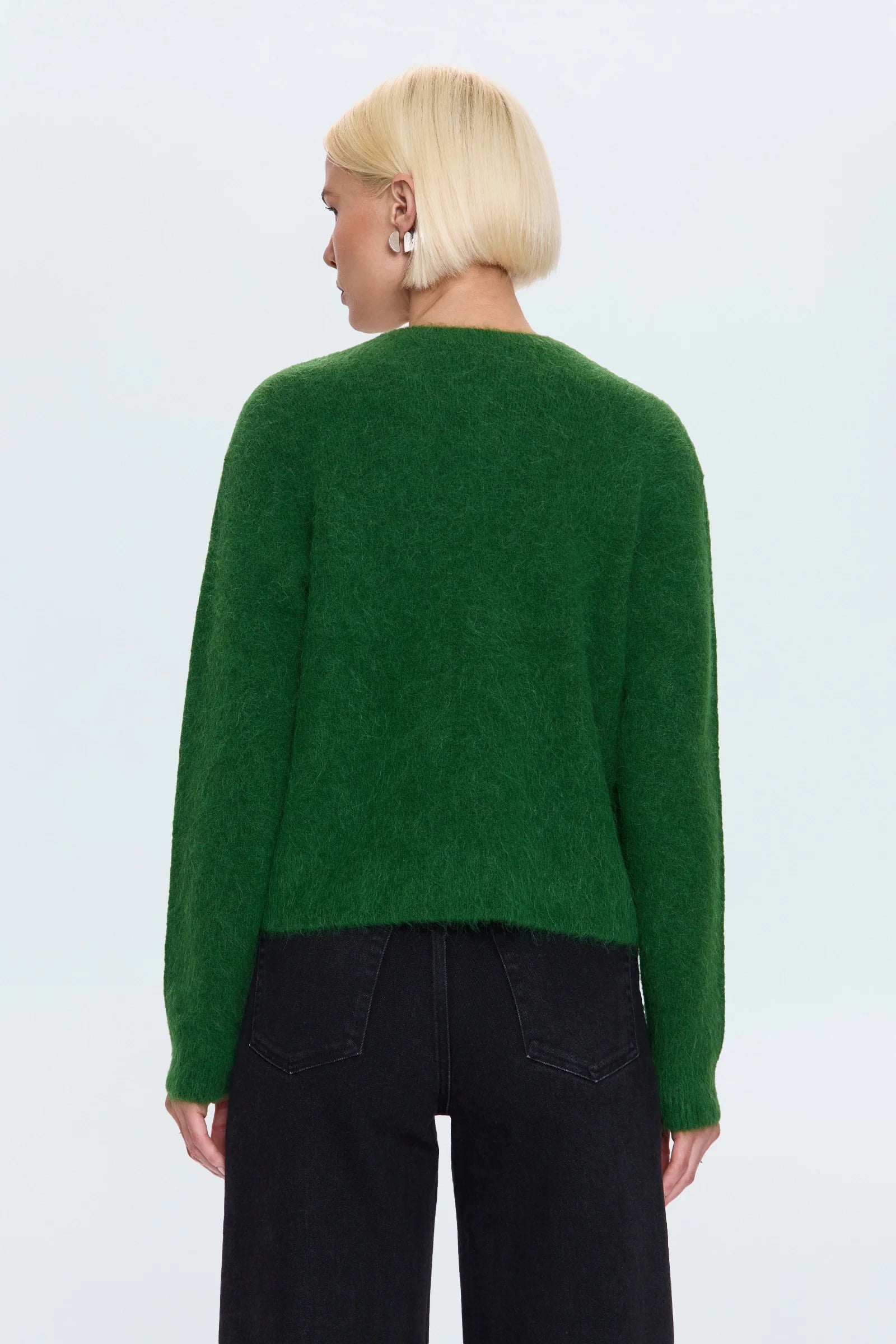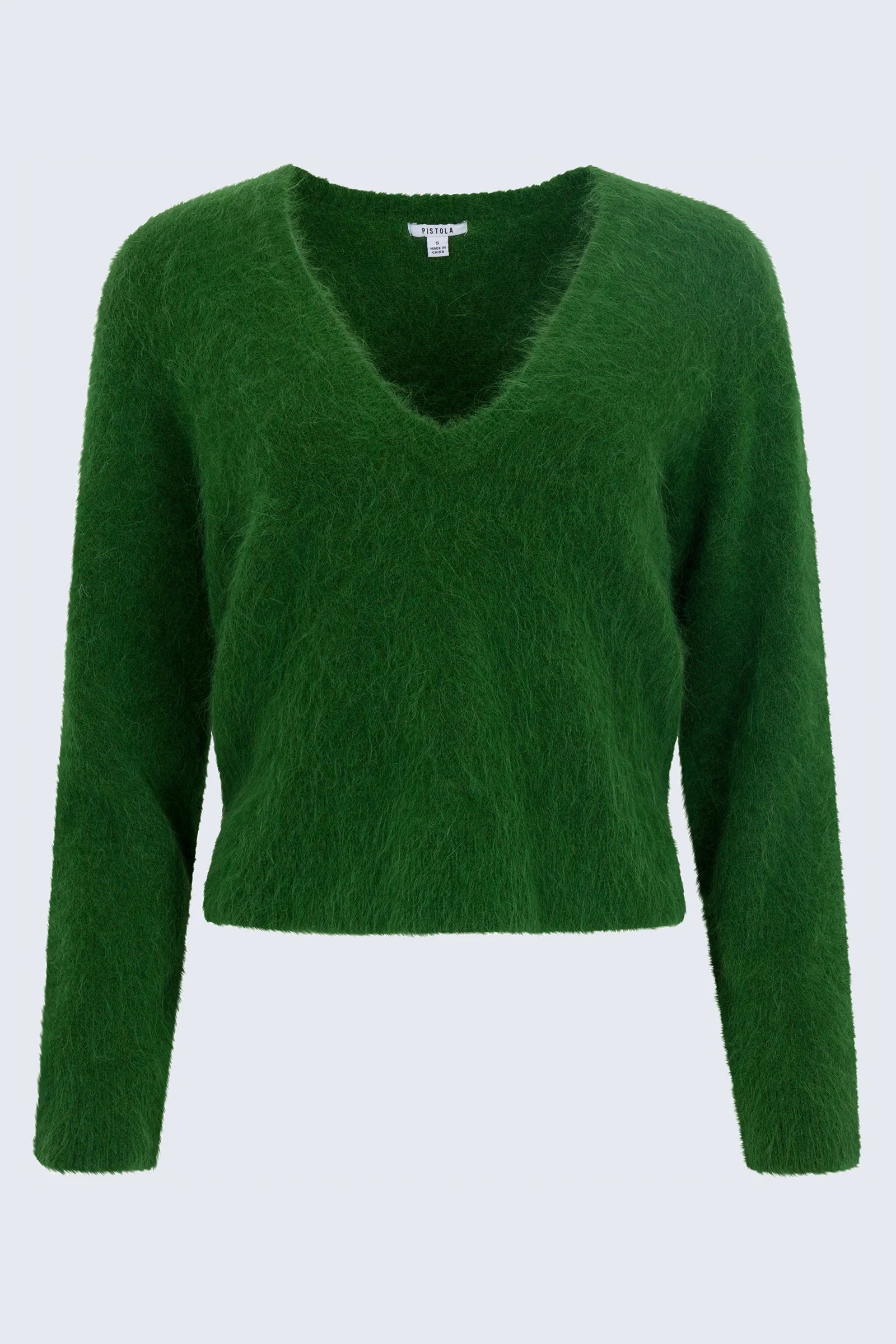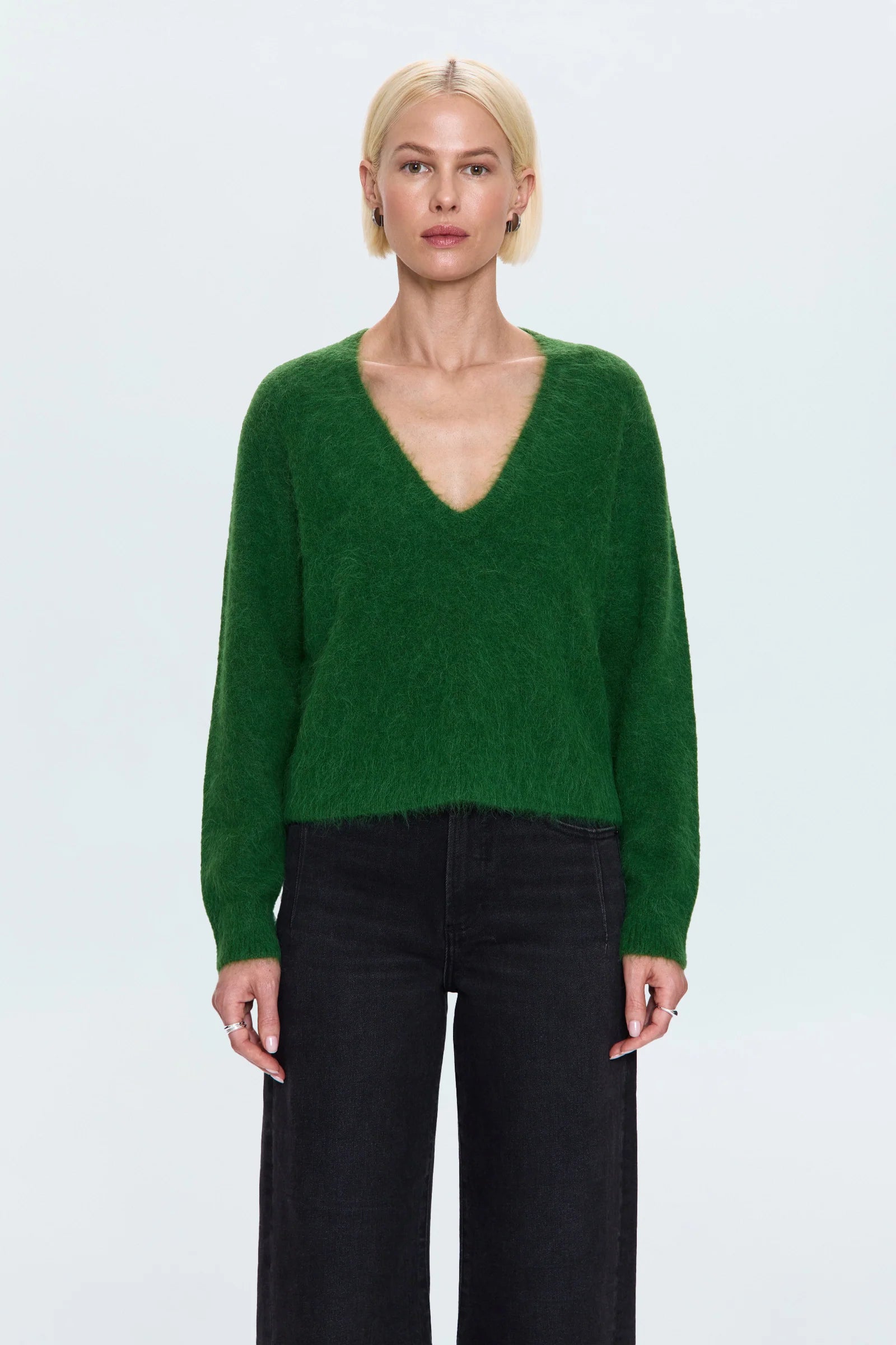 Wrap yourself in softness with the Women’s Kennedy Alpaca Sweater, a timeless V-neck pullover crafted in a rich green hue that’s as calming as it is chic. The luxurious alpaca blend offers a feather-light feel with serious warmth, while the relaxed fit and long sleeves make it perfect for layering. Effortlessly styled with denim or trousers, this sweater is your go-to for elevated, everyday comfort.