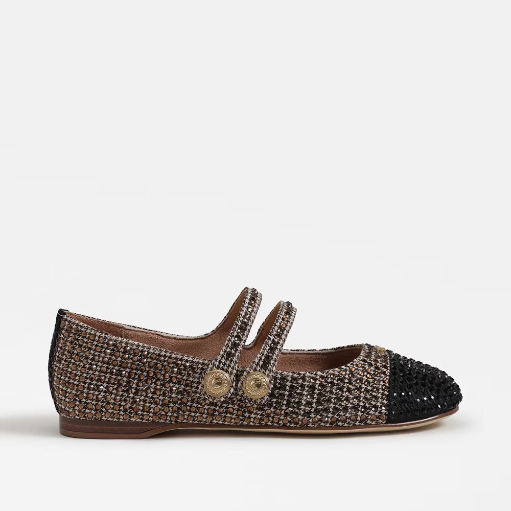 Add a touch of shimmer to every step with the Zoey Ballet Flat. Designed with a classic round toe and flat heel for all-day comfort, this slip-on style blends timeless elegance with a hint of sparkle. The subtle glitter detailing and button snap accent make it perfect for dressing up casual looks or complementing an evening outfit. Pair with cropped trousers, skirts, or your favorite jeans for a polished, feminine finish.